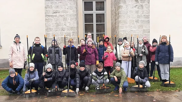 Kuressaare Nooruse kooli õpilased tegid tubli tööpäeva usupuhastuspüha eel muude hulgas Kuressaare Laurentiuse kiriku ja Püha Jakobi kirikute juures.